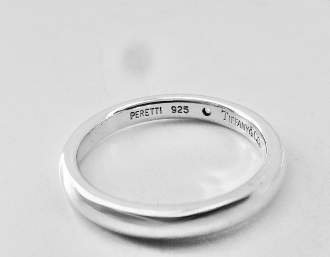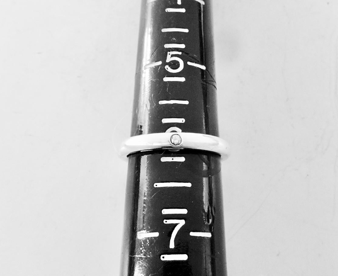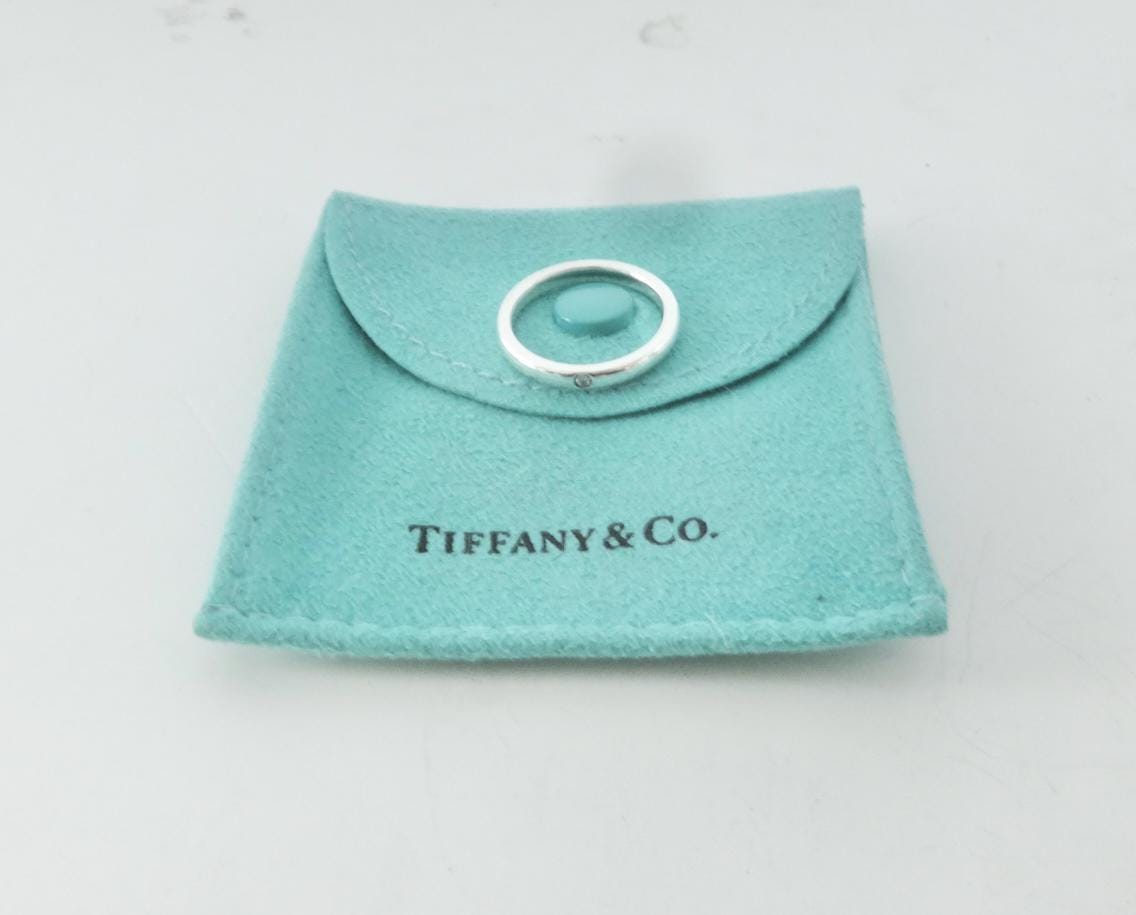 Authentic Tiffany & Co. Elsa Peretti 925 sterling silver brilliant round cut solitaire diamond stackable band ring in size 6. The ring is approximately an 1/8 of an inch (2.5mm) wide and has a deep set brilliant round cut diamond. The inside of the ring is marked Peretti 925 on one side, Tiffany & Co. on the other side. The ring is in very good condition, see pictures of actual item. The price includes Tiffany & Co. dust bag pouch shown, Tiffany box available for an additional fee. If you have any questions, please ask. Thank you.