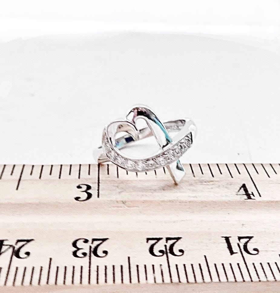 Authentic Tiffany & Co. Paloma Picasso Gold Diamond Heart Ring 18K White Gold Loving Heart Diamond Ring Size 5.5