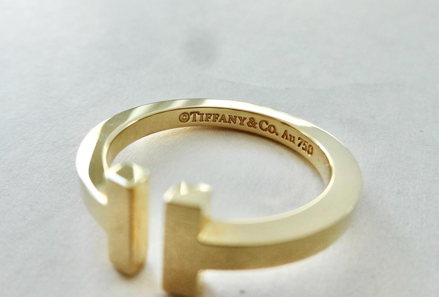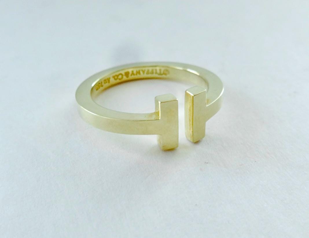 • Load image into Gallery viewer, Authentic Tiffany T Square Gold Ring 18K Yellow Gold Tiffany & Co. Band Ring Size 8.5