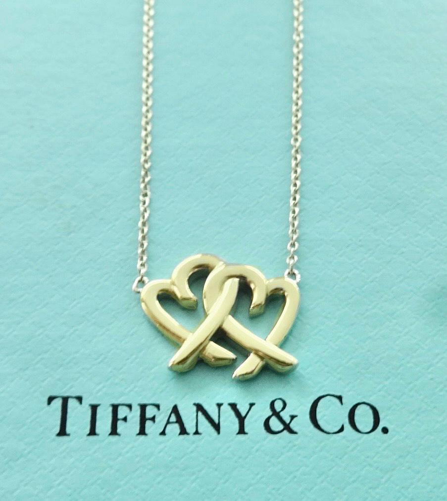 Authentic Tiffany & Co. Paloma Picasso Loving Heart Necklace 18k Yellow Gold Interlocking Double Hearts Pendant Necklace