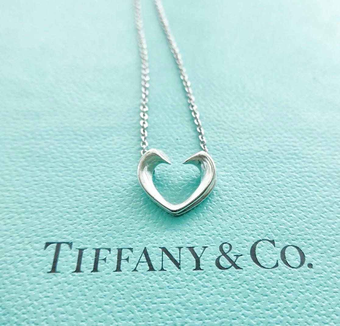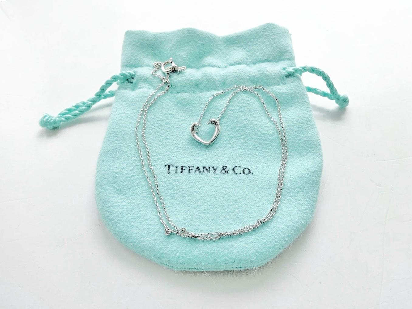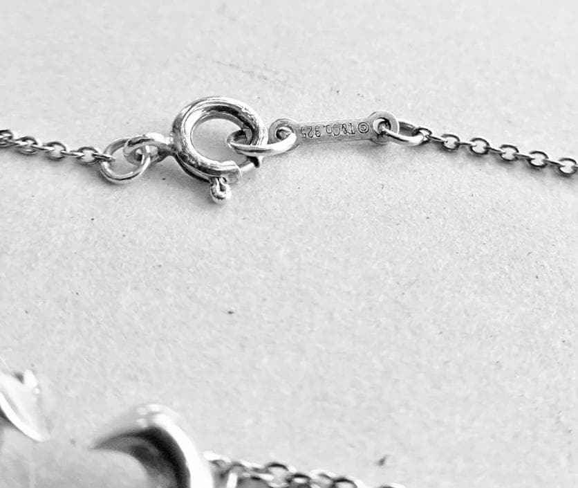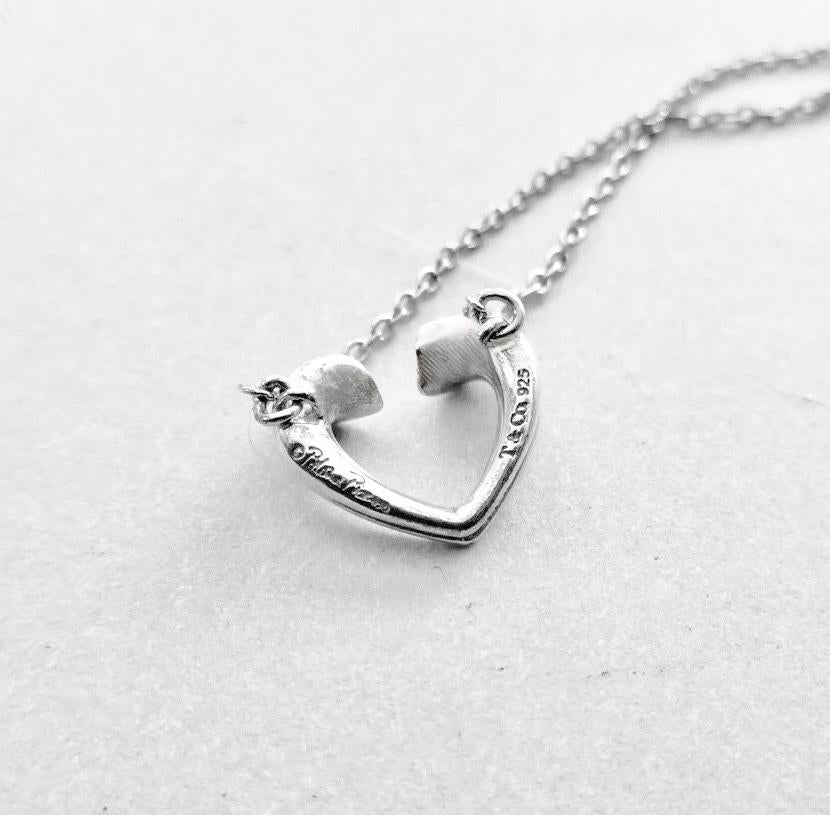 Authentic Tiffany & Co. Paloma Picasso designed 925 sterling silver tenderness modern heart, size mini pendant necklace. The heart is approximately 1/2 inch wide by 7/16 inches long at the widest points and longest points and the back of the heart is marked ©Paloma Picasso on one side, T&Co. 925. on the other side. The permanently attached chain is 16 inches long and one side of the bar on the chain is marked ©T&Co. 925 and the other side of the bar is marked Paloma Picasso. Comes in the blue Tiffany dust bag pouch pictured, Tiffany box available for additional cost. Very good condition, see pictures of actual item. If you have any questions, please ask. Thank you.