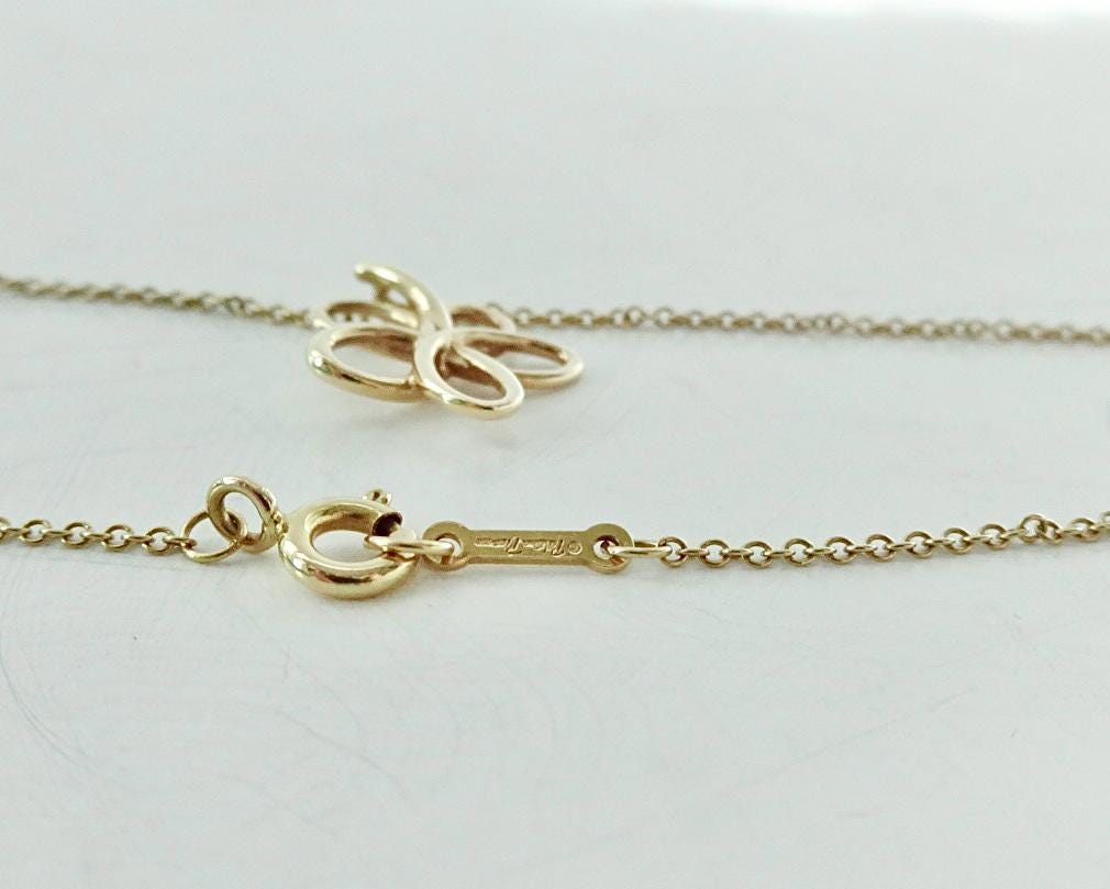 Authentic Tiffany & Co. Paloma Picasso Villa Paloma rose gold flower pendant necklace on a permanently attached 16 inch Tiffany Paloma Picasso chain. The flower is approximately 1/2 inch wide by 5/8 inches long, at the widest and longest points. The bar on the 16 inch chain is marked T&Co. AU750 on one side, ©Paloma Picasso on the other side. Comes in the blue Tiffany dust bag pouch and Tiffany box pictured. Excellent condition, see pictures of actual item. If you have any questions, please ask. Thank you.