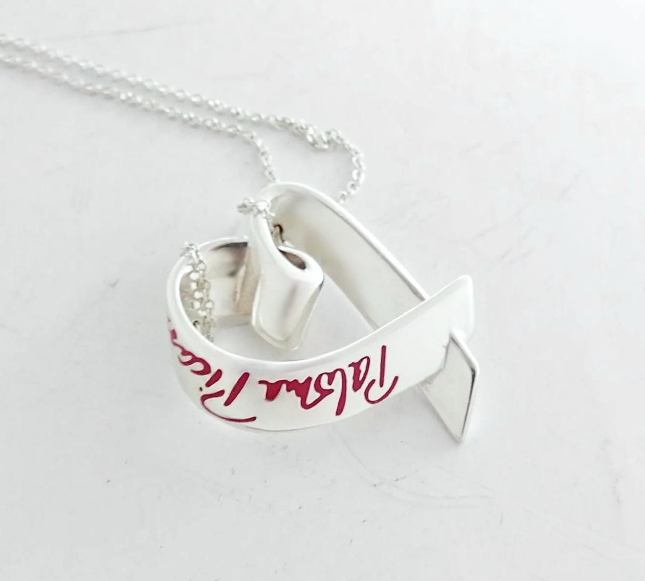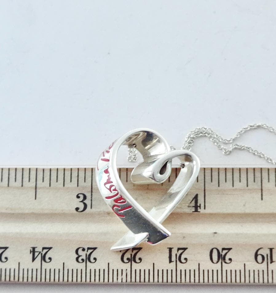 Authentic Tiffany & Co. Paloma Picasso Loving Heart Love Necklace Sterling Silver Red Enamel Graffiti Large Pendant Necklace